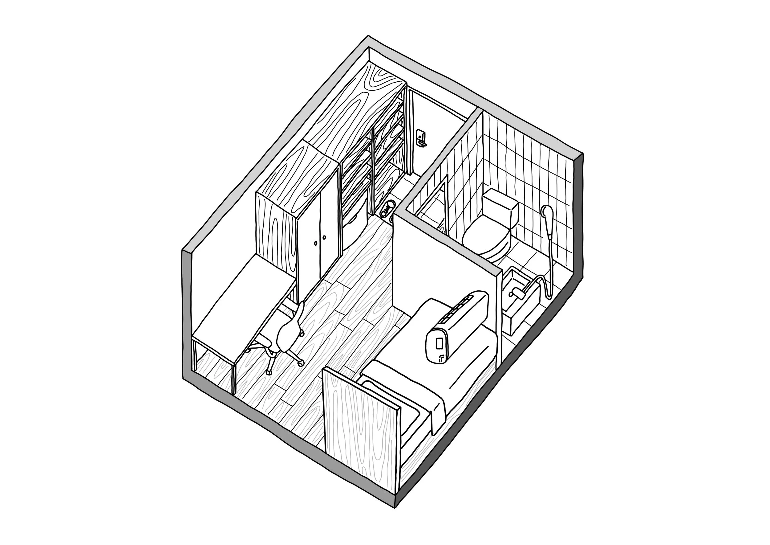 침대 / 책상 / 의자 / 옷장 / 수납장 / 2도어냉장고 / 에어컨 / 인터넷 / 스마트도어락